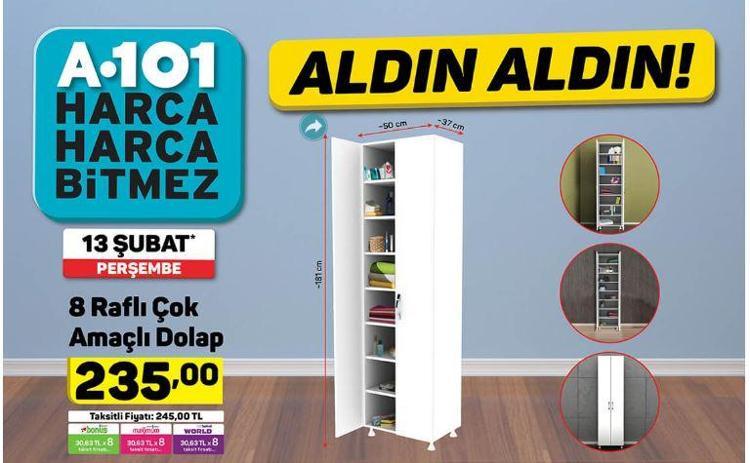 Hemen tıkla yüzlerce indirimi kaçırma. A101 13 şubat aktüel ürünler kataloğu perşembe günü satışa çıkacak olan indirimleri kaçırmak istemeyen alışveriş severler tarafından araştırılıyor. Broşür sayfasında 8 raflı çok amaçlı dolap, ayakkabı dolabı ve çiçeklik gibi ürünleri cazip fiyatlarla. 8 raflı çok amaçlı dolap hakkında yorum penceresinden yorumunuzu iletebilirsiniz. A101 aldın aldın!'da bu hafta: